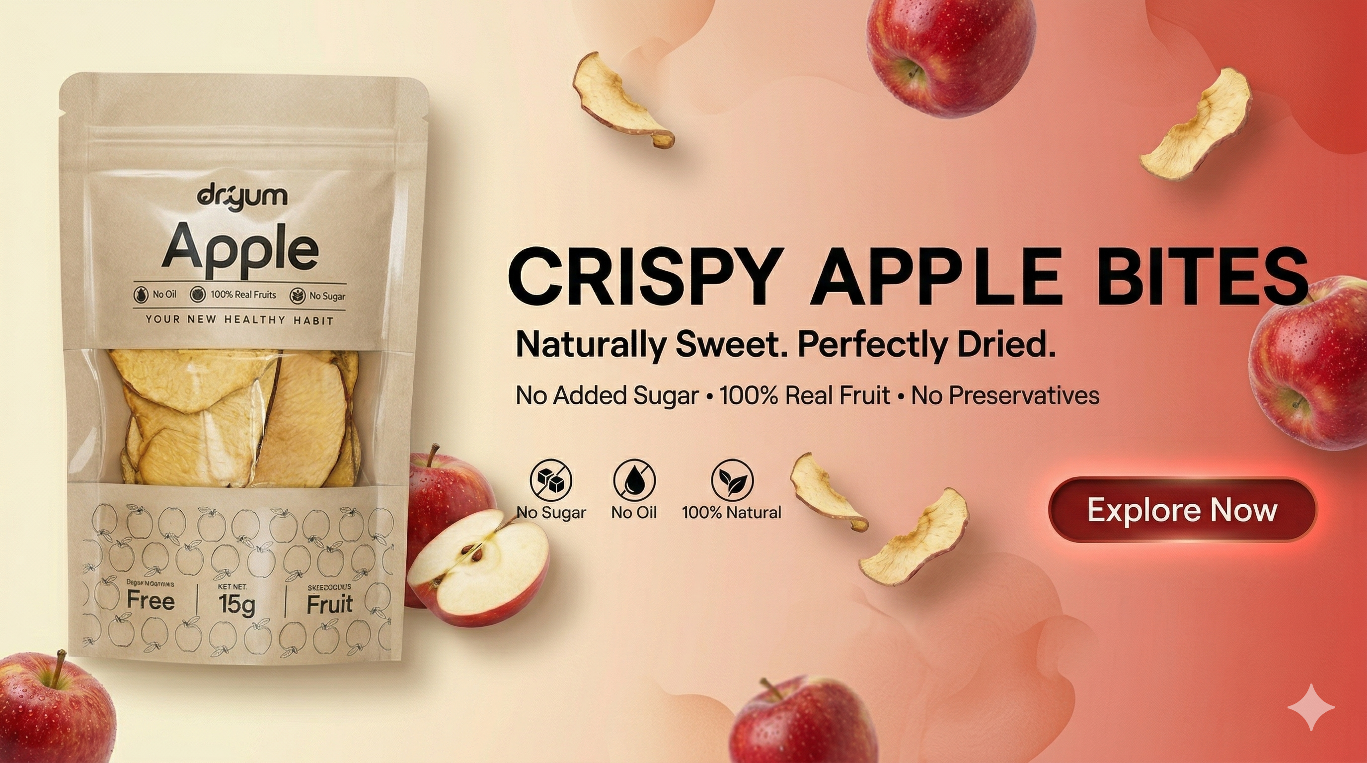 We select only the ripest, hand-picked fruits from our partner orchards in Kashmir. Each piece is inspected for the Driyum standard of vibrant color and natural peak sweetness.