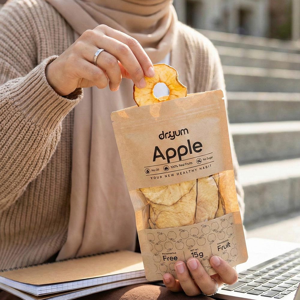 Driyum Apple is made from carefully selected apples, gently dehydrated to preserve their natural sweetness and crisp fruit character. Lightly chewy, subtly sweet, and refreshingโjust real apple, with nothing added.